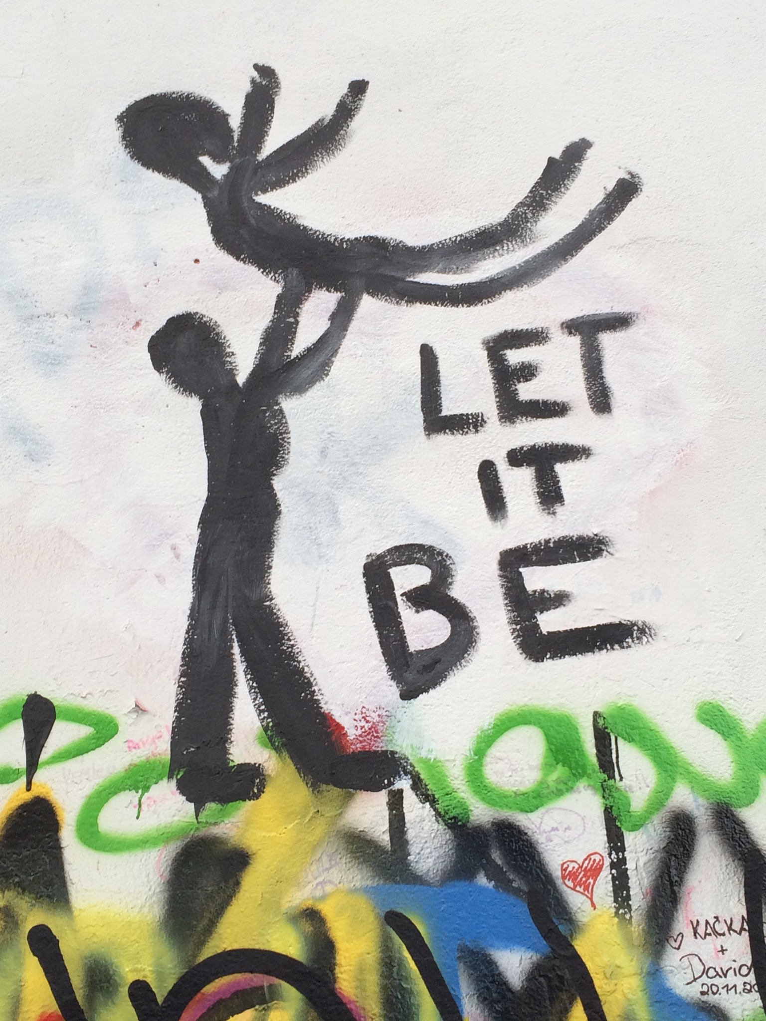 Since the late 1980’s the wall has been painted with John Lennon graffiti and lyrics from The Beatles. During the communist regime Czech students would voice anger and protest over the dictatorship of Guatav Husak by writing on the wall. Later the wall would become a symbol of revolution. Today, it still embodies universal ideals of peace, compassion, and love.